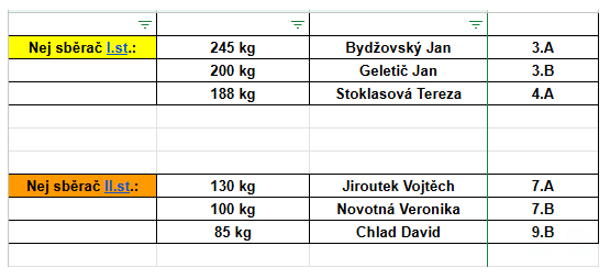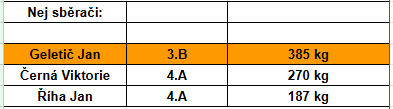 Výtěžek z tohoto sběru opět použijeme pro naše zvířátka. A kdo se stal nejlepším sběračem a získává slíbenou poukázku na nákup v Bageterii Boulevard? Podívejte se do přílohy.